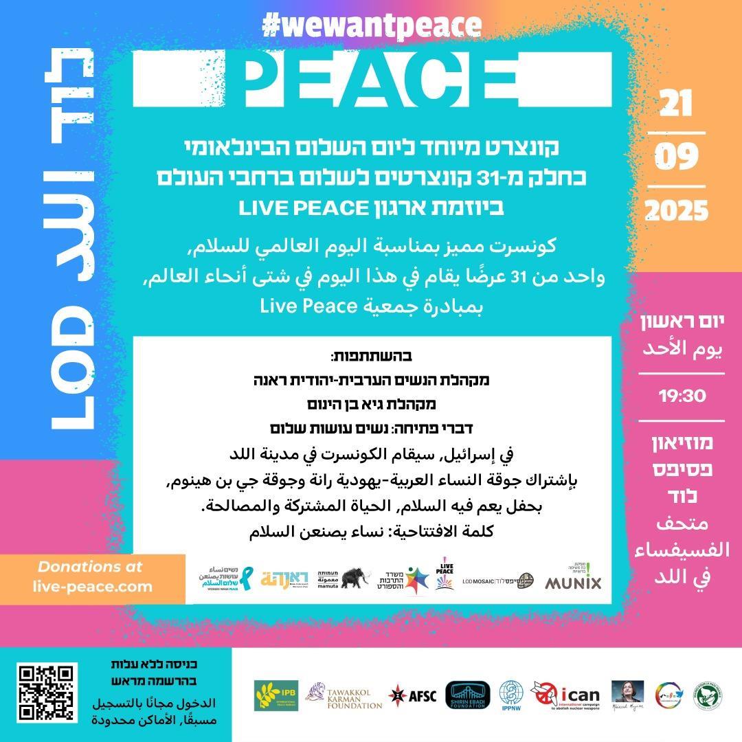 קונצרט מיוחד ליום השלום הבינלאומי - כחלק מ-31 קונצרטים לשלום ברחבי העולם ביוזמת ארגון Live peace
