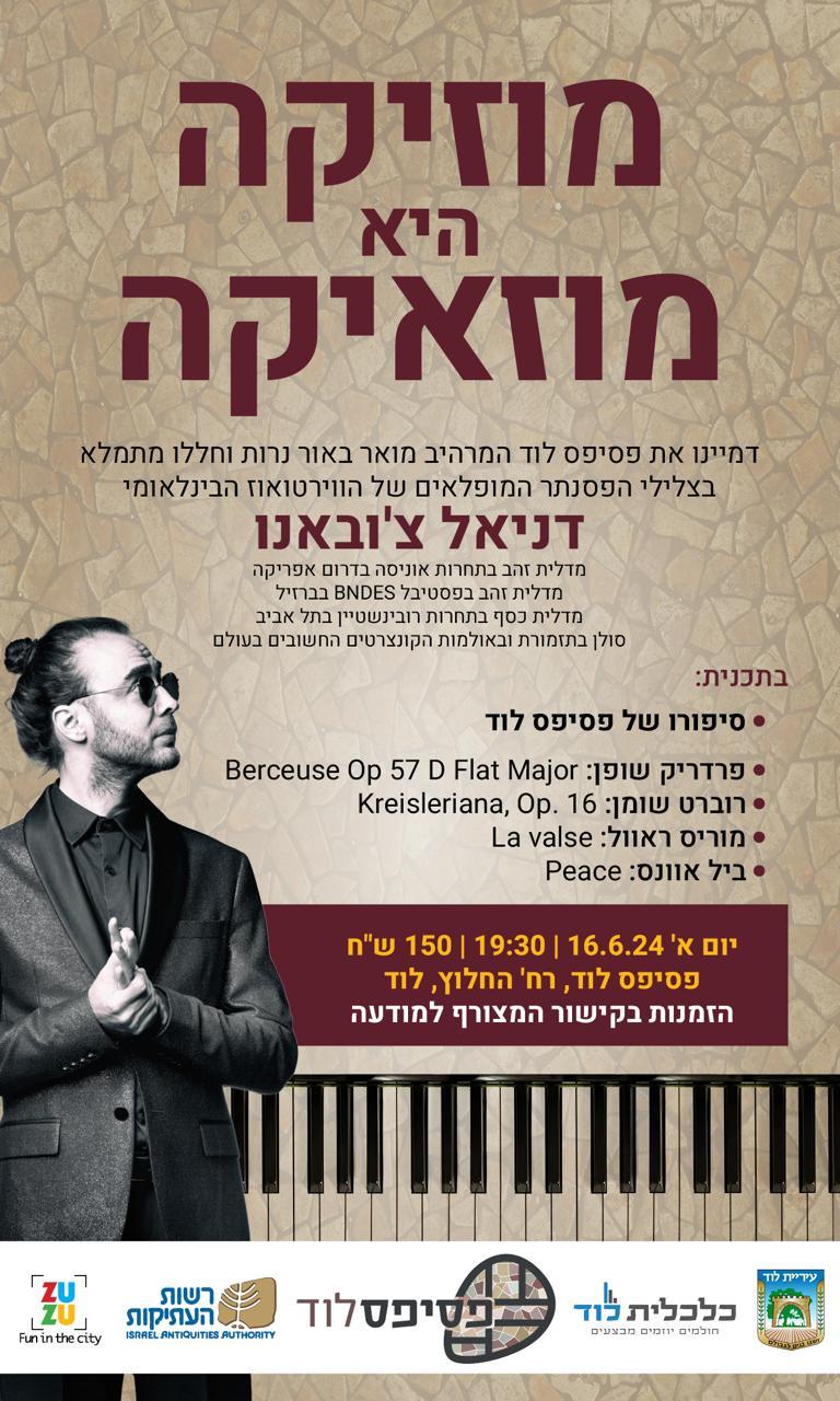 דמיינו את פסיפס לוד המרהיב מואר באור נרות וחללו מתמלא בצלילי הפסנתר המופלאים של הווירטואוז הבינלאומי דניאל צ'ובאנו